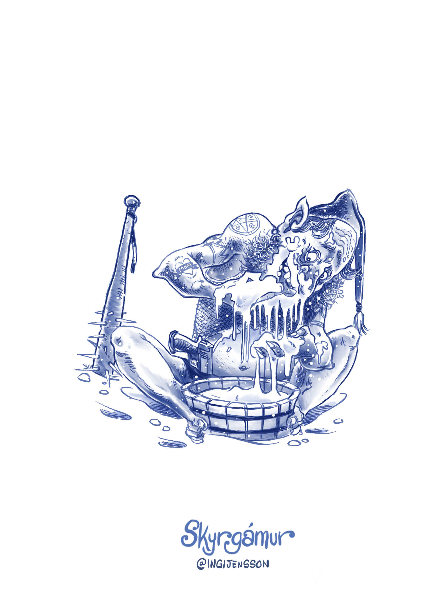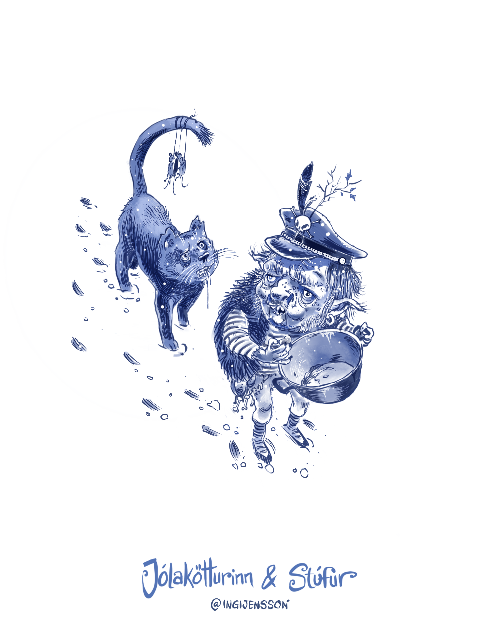 The Icelandic Jólasveinar (Yule-Lads) are a quirky bunch of 13 misbehaving mountain dwelling Troll offsprings that descend to town, one by one, in the 13 days leading up to Christmas to play havoc and to give children little gifts in their shoe (that they have place in their window over night.) You can find everything there it to know about them and their parents here: http://bit.ly/IcelandicYuleLads